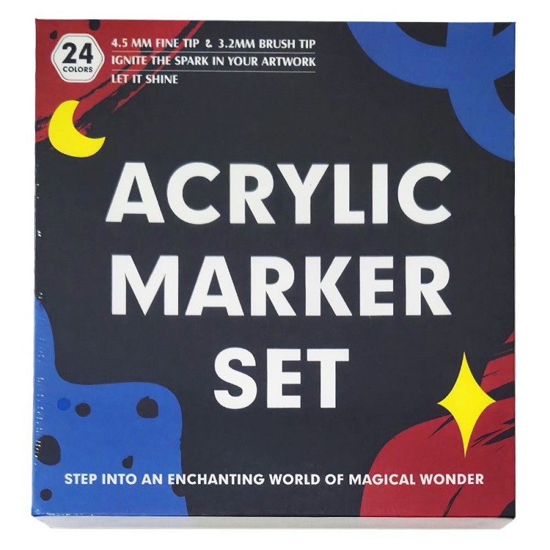 Комплект акрилни маркери двувърхи с четка, 24 цвята