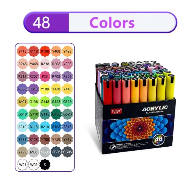 Професионални маркери с акрилна боя на водна основа. Дебелина на линията за писане 4 мм. Маркерите могат да се използват върху различни повърхности като хартия, плат, стъкло, керамика, дърво, метал и др. С покривната акрилна боя можете да рисувате дори върху черна хартия и пак ще се радвате на ярки и живи цветове. Чудесна идея за перфектен подарък! Този комплект маркери е подходящ за деца и любители на рисуването.