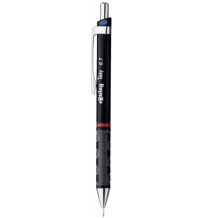 Автоматичният молив Tikky е чудесен избор за чертане или рисуване. Месинговият механизъм позволява прецизно придвижване на графита. Лекото тяло с триъгълна цев е удобно за захващане и не се хлъзга по наклонени повърхности. Двукомпонентният гумен захват Softtouch прави молива изключително удобен за употреба. С вградена гумичка и острилка под капачката (върха).