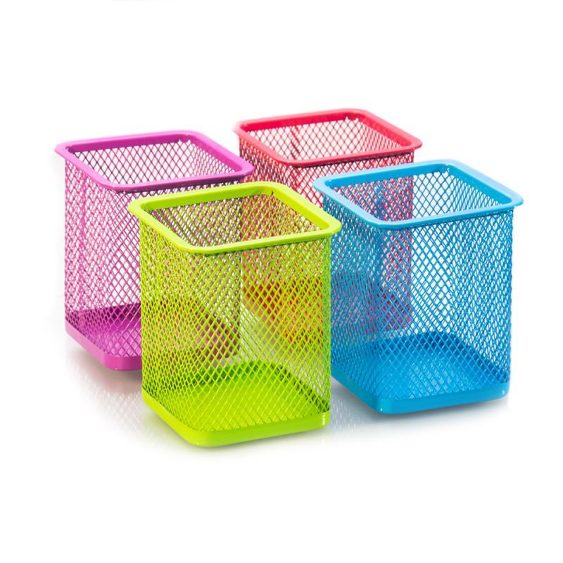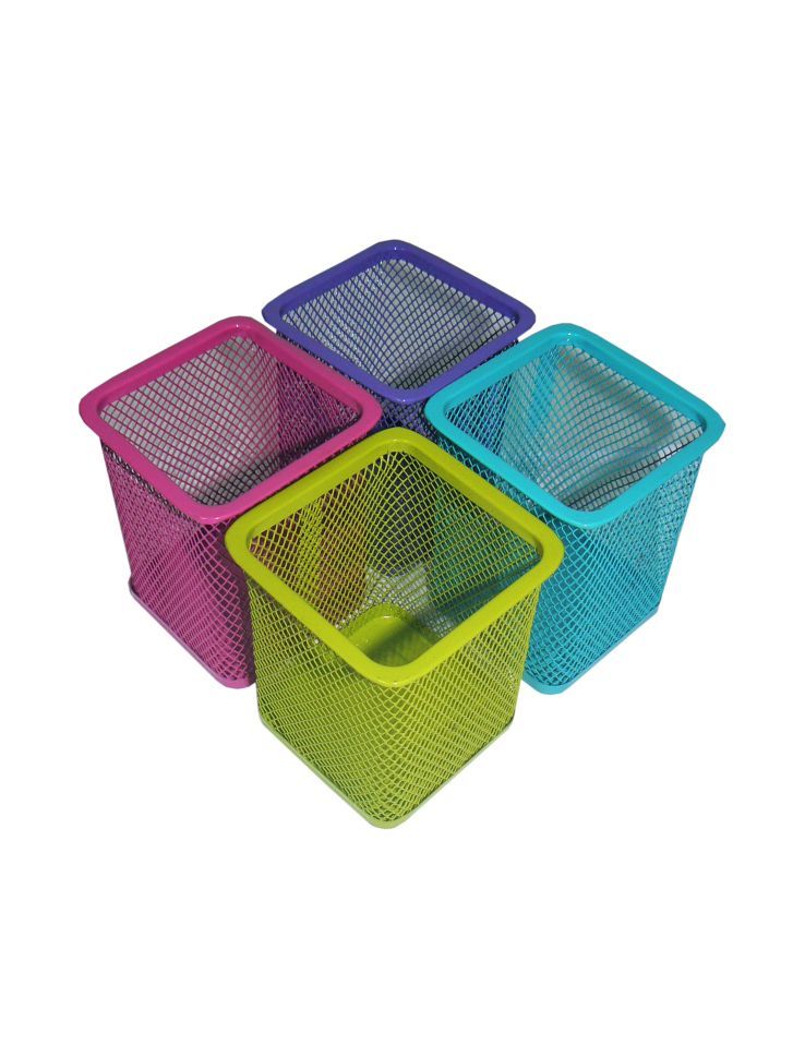 Метален моливник или органайзер за бюро с квадратна форма. Предназначен, за съхранение на химикалки, моливи и други канцеларски материали. Дизайнът му е изчистен и подходящ за бюрото, в училище или в офис среда.