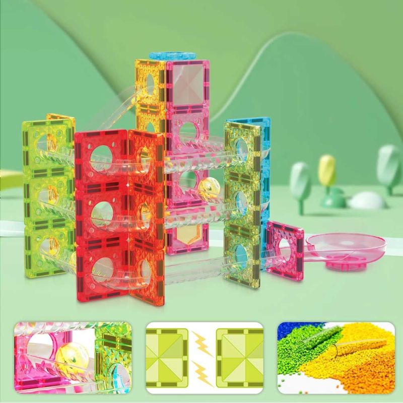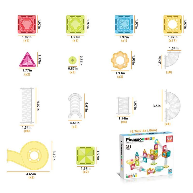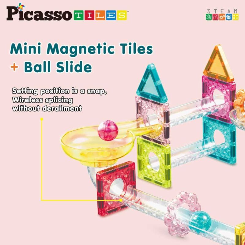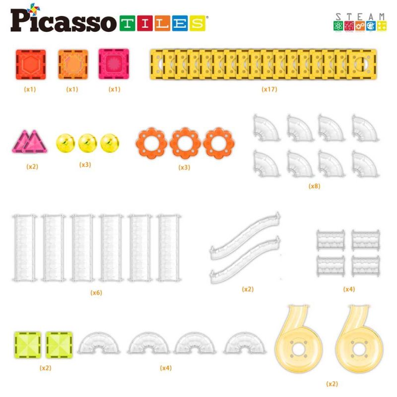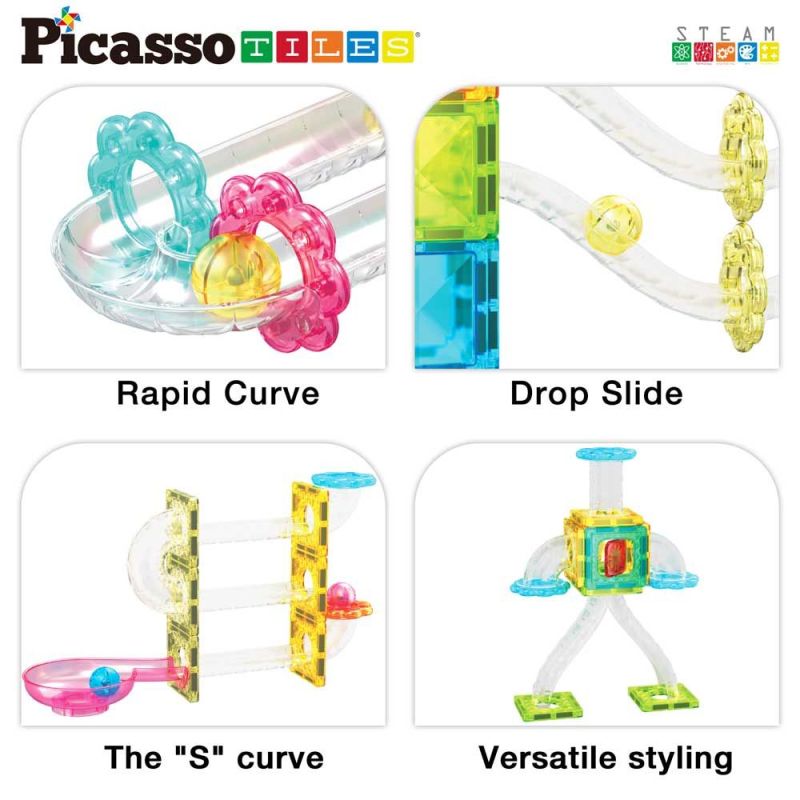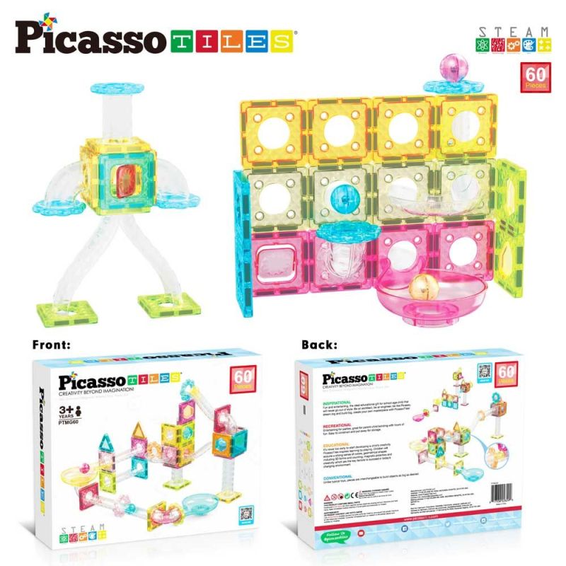 Съчетавайки STEAM (Наука, Технологии, Инженерство, Изкуство и Математика) в единно преживяване, PicassoTiles дава възможност на децата да учат чрез интуитивна игра. Комплектът PicassoTiles от 60 части е изработен от издръжливи материали и вдъхновява креативността и инженерството у децата. С безкрайни конфигурации, той развива умения за решаване на проблеми, като същевременно осигурява часове забавление, докато топчетата се ориентират в сложни лабиринти. Преносим и перфектен за самостоятелна или групова игра, този магнитен конструктор с топчета е любим на децата.