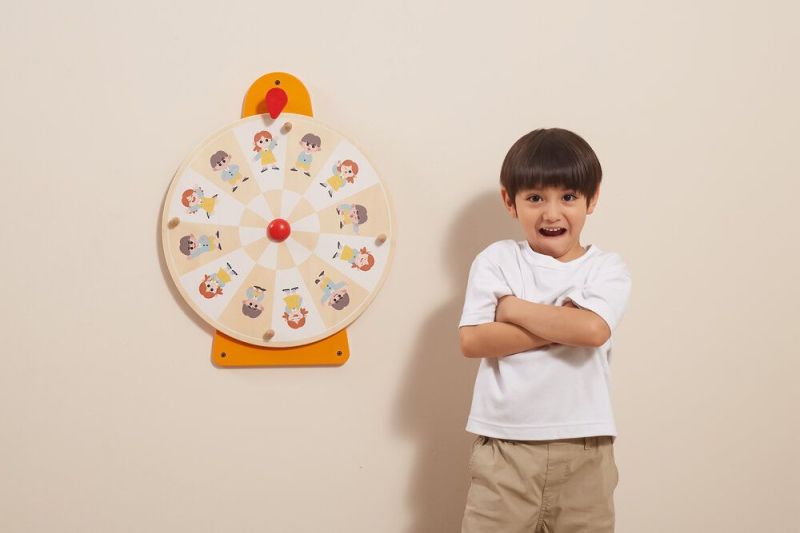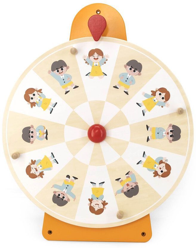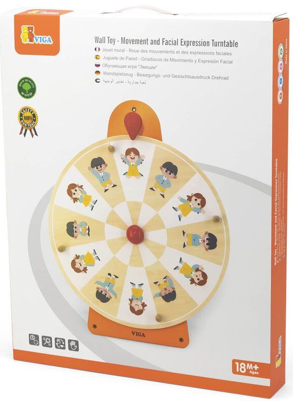 Дървената образователна игра от Viga е страхотно занимание за групови дейности в класната стая, както и при редуване на почивки с учебен процес. Тази интерактивна играчка за стена показва 12 деца с различни изражения, емоции и действия, изобразени на кръгло пано, което може да се върти. Предложете на децата да анализират как е изобразена емоцията на всяка отделно лице, както и какво чувство е пресъздадено на рисунката. След това обсъдете как да изиграят действието. Тази игра помага на децата да изследват различните емоции и движения на тялото, като тренират способността си за наблюдение и бърза реакция.