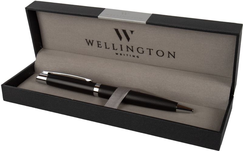 Метална химикалка в черен цвят. Синьопишеща, с дебелина на печата 0,5 мм. Пристига в подаръчна кутия, готова да изненада Вас или ваш близък.