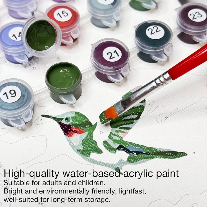 Създайте авторски шедьовър със собствените си ръце, дори ако работите с платно и бои за първи път. Комплектът с акрилни бои по номера е перфектен подарък, подходящ дори за най-малките. Просто е! Рисувате според номерираните контури, които съответстват на цвета на боята (номер в горната част на контейнера) и истинската картина ще започне да се появява. В комплекта са включени всички необходими материали: