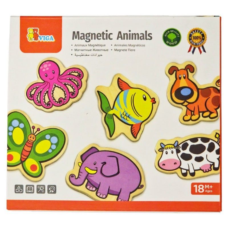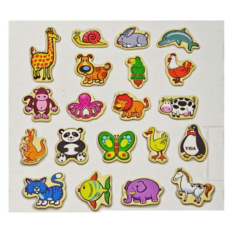 Дървени магнитни животни от Viga Toys. Комплектът включва 20 броя различни животни, изработени са от висококачествена дървесина и са оцветени с нетоксични бои. Подходящи са за деца над 18 месеца. Помагат за развитието на двигателните умения и въображението.