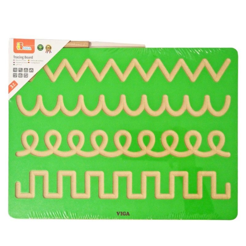 Viga Tracing Board (дъска за проследяване) e дървен образователен инструмент, предназначен да помогне на децата да развият фини двигателни умения и координация око-ръка. Дъската има гравирани канали с различни форми и модели за проследяване. Помага за изграждането на мускулна памет, което е от решаващо значение за по-късното писане. Изработена е от дърво и е предназначена за деца на възраст над 3 години.