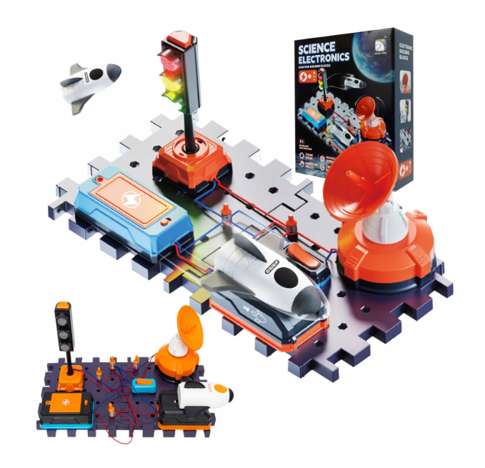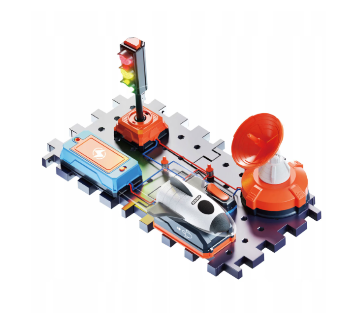 Открийте завладяващия свят на физиката и електрониката за вашето дете - чрез игра и експериментиране! Този научен комплект не е просто играчка, а пълноценна лаборатория за вашия малък строител. Перфектна образователна идея за подарък, която развива креативността, сръчността и техническите знания. Комплектът се състои от цветни, лесни за свързване модули, които позволяват на детето да изгради истинска електрическа верига. С прости движения то научава какво е ток, захранване, ключ и много други компоненти. Комплектът съдържа елементи за създаване на прости и сложни електрически вериги, свързани последователно и паралелно. Работи с батерии (3 x AAA 1.5 V - не са включени).