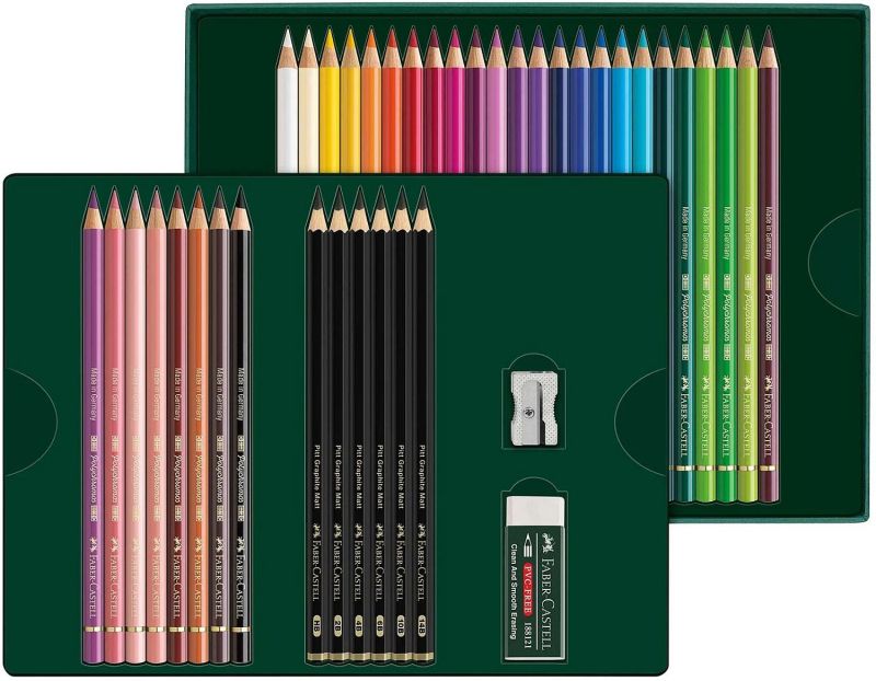 Комплектите на Faber-Castell с цветни моливи Polychromos & Графитни матови моливи Pitt Graphite Matt & Аксесоари са перфектния подарък за любители и професионалисти.