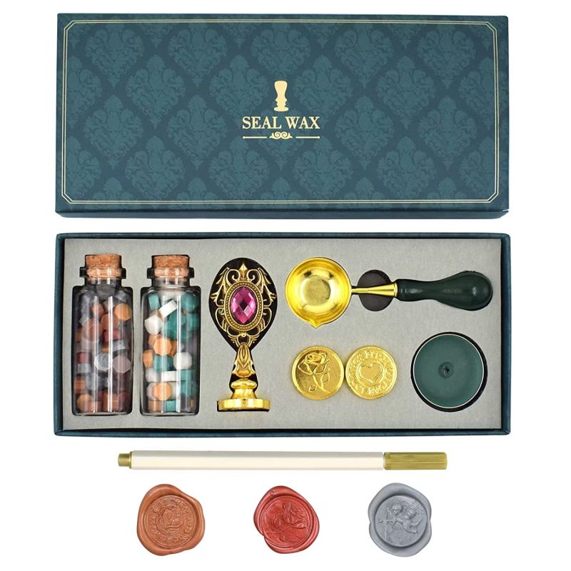 Какво включва комплектът? Обикновено съдържа восък и печат или аксесоари за създаване на восъчни отпечатъци.
