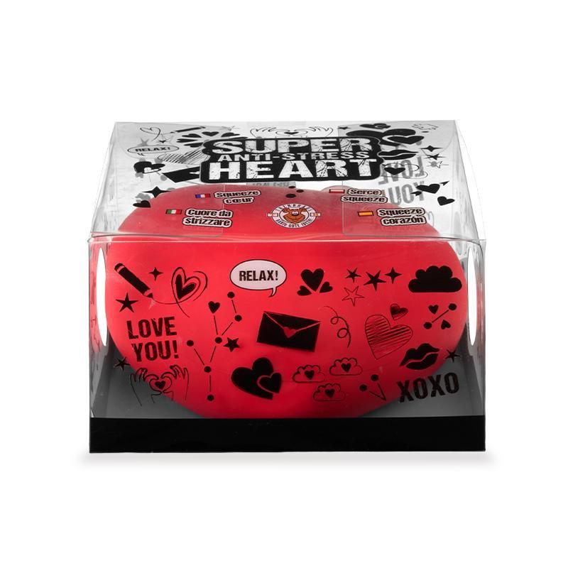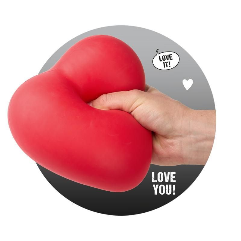 Голяма, удобна за стискане форма във вид на сърце – стимулира положителни емоции и настроение. Мек и еластичен материал, приятен на допир. Подходящо както за забавление, така и за декорация на бюро или стая.